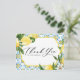 Envoyez un remerciement à votre famille et à vos amis pour avoir participé à votre journée spéciale avec cette belle carte postale de remerciement botanique. Il présente des illustrations aquarelles de citrons et de fleurs de citrons et un motif méditerranéen. Cette carte postale de remerciement botanique est parfaite pour les mariages d'été et d'autres événements. Personnalisez en ajoutant vos détails. Cette carte postale de remerciement au citron mariage est disponible sur d'autres cartons. Des éléments correspondants sont disponibles.