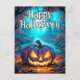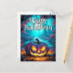 Cette carte postale Happy Halloween créative illustre un citrouille sinistre, sous une pleine lune, au fond de la forêt. N'hésitez pas à ajuster toutes les options disponibles comme vous le souhaitez.