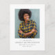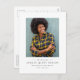 Avec sa photo verticale unique et sa typographie simple et classique, cette faire-part de remise de diplômes et carte postale d'invitation est le moyen idéal de partager vos nouvelles diplômées avec vos amis, votre famille et votre invitation à une célébration de remise de diplômes. Convient aux garçons et aux filles, il fonctionne aussi pour les diplômes de l'université et du secondaire. Le noir et blanc classique est éditable en cliquant sur "customiser plus loin" et ce design est disponible dans d'autres formats dans le cadre de la collection Lea Delaveris Design Simple Classic graduation.