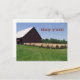 Dites "Hay" à vos amis et à la famille dans le style sud avec cette impressionnante carte postale Farm Life USA avec une grange rouge classique et de grandes balles rondes de foin.