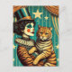 Un mignon clown de cirque portant une veste d'impression de tigre et tenant un chat-chaton de couleur tigre L'IA produit de l'art