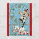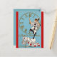 Cette carte postale modifiable présente une illustration vintage d'un clown tenant la main d'une horloge tout en debout sur le dos d'un autre clown agenouillé. Il y a un message de Nouvel An ainsi que la date.