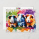 Carte Postale Cobayes mignons aux éclaboussures de couleur, sur