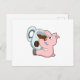 Carte Postale Cochon avec tasse de café