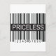 Un code upc noir et blanc typique, avec une large bande de noir affichant le mot "PRICELESS".