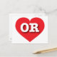 Cette carte postale est dotée d'un coeur rouge vif contenant les lettres coques supérieures OR, en gras, blanches, l'abréviation officielle de l'état castor de l'Oregon. Le verso de la carte postale est vide, en attendant vos sentiments manuscrits ou le texte customisé.