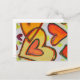 Des coeurs de couleur pêche, rose et orange se croisent comme des nuages qui dérivent dans le ciel. Un contour vert dessine chaque coeur. Des points de couleur jaune pâle ressemblent à des confettis entre les coeurs. La peinture à l'aquarelle est recouverte d'une légère couche d'or et de rose. Personnalisez cette carte postale avec votre texte et vos images personnelles !