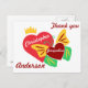 Une image d'un cœur rouge couronné, un papillon coloré avec un cœur rouge comme corps. Carte de vœux MERCI entièrement personnalisable. Vous pouvez modifier l'image et vous pouvez modifier ou supprimer les textes colorés : Merci, Christopher, Jacqueline, Anderson. Ainsi, cette carte peut être personnalisée pour tout événement, célébration ou fête. Certains produits assortis sont disponibles. Vous pouvez transférer ce design sur une variété d'autres produits de votre choix. Veuillez utiliser le bouton "Modifier le design" pour ajuster l'image à la forme du produit particulier. Cela vous transférera vers l'outil de conception. Utilisez l'option "Ajuster/Remplit" (menu à droite de l'outil de conception). Vous pouvez mettre à l'échelle, faire pivoter, retourner l'image sur le modèle de produit, et vous pouvez ajouter du texte de votre choix ou modifier la couleur de l'arrière-plan. Vous pouvez également modifier le type, la couleur de la police et l'emplacement du texte. Vous pouvez modifier ou personnaliser le design absolument comme vous le souhaitez. Soyez simplement créatif, ache