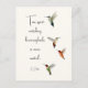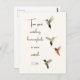 Carte postale pour les amateurs de colibris avec des colibris roux, des colibris à gorge rubis et d'Allen et la phrase "Le temps passé à observer les colibris n'est jamais perdu". Images d'oiseaux et citation de Christiane Dobbins.