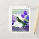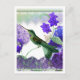 Carte Postale Colibri vert avec fleurs, dentelle, perles
