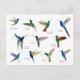 Carte postale pour les amateurs de colibris présentant plusieurs espèces de colibris tropicaux peints à la main tels que les colibris couronnés pourpre-velours, le starfrontlet à gorge bleue, le jacobin à col blanc, le saphir à queue dorée, le starfrontlet sombre et les colibris à ventre noir. Images tirées de mes peintures aquarelles originales.