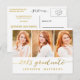 Carte postale moderne branchée invitant votre famille et vos amis à la fête de remise des diplômes de votre fille. Collage photo de script simple | Invitation de la fête des diplômés pour 2015. Design par Elke Clarke © Visitez notre boutique www.zazzle.com/monogramgallery* pour plus de design et de styles. Une simple typographie de feuille d'or manuscrite écriture de police de texte superposition (effet photo imprimé) avec les mots "Graduate 2015" avec un trois montage photo design. Remplacez les exemples de photos par les vôtres. Couleurs blanches et or. Autres styles et couleurs disponibles.