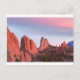 Jardin des Dieux avec un beau ciel de coucher de soleil coloré. Les formations rocheuses rouges du Jardin des Dieux ont été créées lors d'un bouleversement géologique le long d'une faille naturelle il y a des millions d'années. Les preuves archéologiques montrent que les peuples préhistoriques ont visité le Jardin des Dieux vers 1330 avant JC. Vers 250 avant JC, les Amérindiens ont campé dans le parc. Le Jardin des Dieux est un parc public situé à Colorado Springs, dans la partie nord de Colorado City, Colorado, États-Unis. Il a été désigné monument naturel national en 1971. Comment le Jardin des Dieux a été nommé - En 1859, de l'or a été découvert dans la région de South Park, dans le Colorado, et "Pikes Peak or Bust" est devenu un slogan populaire, car un grand nombre de chercheurs de fortune se dirige