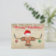 Envoyer à la famille et aux amis cette carte postale unique "One of a Kind" Comical Longhorn Steer Christmas Il comprend une comique Longhorn Steer portant un Casquette de Noël et des ornements...Souhaitant à tous un "MOO"~EY CHRISTMAS...et une BONNE "MOO"-ANNÉE ! Ce design "original" a été créé par l'artiste Kerry Miller.