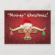 Envoyer à la famille et aux amis cette carte postale unique "One of a Kind" Comical Longhorn Steer Christmas Il comprend une comique Longhorn Steer portant un Casquette de Noël et des ornements...Souhaitant à tous un "MOO"~EY CHRISTMAS...et une BONNE "MOO"-ANNÉE ! Ce design "original" a été créé par l'artiste Kerry Miller.