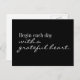 Commencez chaque journée avec un cœur reconnaissant. C'est un excellent rappel pour les amis, la famille, les collègues et nous-mêmes. La carte postale noire présente une typographie blanche croquante fantaisiste et gentille qui est un mélange de calligraphie et de typographie imprimée.