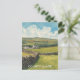 Une carte postale de style vintage du comté de Clare, en Irlande, capture des champs verts vallonnés, des cottages charmants, et la beauté robuste du Burren dans des couleurs muettes et nostalgiques.