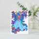Femme papillon en robe bleue entourée de fleurs avec papillon
