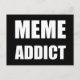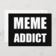 Connaissez des gens qui fouillent obsessionnément Internet pour rechercher des mèmes, des mèmes et d'autres mèmes ? Peut-être connaissez-vous des gens qui les créent ? Ou les créez-vous ? Parlez au monde de cette addiction ! Cette carte postale a un arrière - plan noir, avec un texte blanc qui dit, "Addict de mème". Prenez-en quelques-uns aujourd'hui !