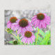 Cette carte postale présente de jolis conflowers roses et un look peint.