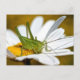 Macro conehead cricket sur fleur marguerite (genre Conocephalus)
