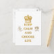 Ce design comporte une couronne "3D" dorée sur les mots "Keep Calm and Choose Life". N'hésitez pas à ajouter vos propres mots/images/couleur arrière - plan à cet article via les grands outils de personnalisation de Zazzle !