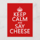 Ceci dit Keep Calm and Say Cheese, dans le style de l'affiche classique garder calme. C'est une belle conception simple, qui fait une merveilleuse gamme de cadeaux pour les photographes, professionnels et amateurs.