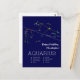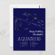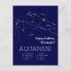 Constellation du zodiaque Verseau ou porteur d'eau. La couleur des étoiles est à peu près réelle. Noms d'étoiles et d'objets spatiaux. Le porteur d'eau est associé à Deucalion, qui a construit un bateau avec sa femme Pyrrha pour survivre au grand déluge. Il est également identifié comme Ganymède, le fils du roi troyen Tros, qui fut emmené par Zeus sur le mont Olympe pour servir d'échanson aux dieux. L'Aigle voisin représente l'aigle qui a enlevé le jeune garçon. Le Verseau est une constellation du zodiaque. Le Soleil traverse la région le long de la ligne de l'écliptique entre le 21 janvier et le 18 février. Carte postale unique, élégante et drôle pour les vœux d'anniversaire pour n'importe qui. Personnalisable. Vous pouvez changer l'image et le texte du modèle "Joyeux anniversaire, Christopher !". Vous pouvez transférer ce design sur une variété d'autres produits. Il suffit de choisir le produit dans l'option déroulante "Transférer le design sur un produit". N'oubliez pas d'utiliser le bouton "Personnaliser" ou "Modifier le design", ou le lien bleu "Détails" --> "Cliquez pour personnaliser davantage" --> "REMPLIR/ AJUSTER