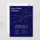 Constellation du zodiaque Vierge ou la Vierge. La couleur des étoiles est à peu près réelle. Noms d'étoiles et d'objets spatiaux. Vierge est la deuxième plus grande constellation du ciel. Elle appartient à la famille de constellations du zodiaque. Le Soleil traverse la région le long de la ligne de l'écliptique entre le 23 août et le 22 septembre. Il y a 35 exoplanètes vérifiées en orbite autour de 29 étoiles dans la Vierge. Peut-être dirons-nous bonjour à leurs habitants chaque fois que nous regardons la constellation. Les Grecs associaient Vierge à la déesse du blé et de l'agriculture, Déméter. Parfois, Vierge est identifiée comme la déesse vierge Iustitia, qui tient les écailles de la justice dans sa main (la constellation de la Balance). Carte de vœux d'anniversaire unique, élégante, drôle et personnalisable pour qui que ce soit. Vous pouvez modifier l'image et le texte du modèle "Joyeux anniversaire, Christopher !". Vous pouvez transférer ce design sur une variété d'autres produits. Il suffit de choisir le produit dans l'option déroulante "Transférer le design sur un produit". N'oubliez pas d'utiliser le bouton "Personnaliser" ou "Modifier le design", ou le lien bleu "Détails" --> "Cliquez pour personnaliser davantage" --> "REMPLIR/ AJUSTER" pour AJUSTER LE