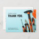 Une carte postale de remerciement sur le thème de l'outillage de correspondance minimal, avec un design photo plat simple. Elle comporte un outillage de correspondance au premier plan avec un simple merci sur le côté. À l'intérieur, il y a un espace supplémentaire pour votre message de remerciement personnalisé à votre équipe de construction et d'ingénierie ou à vos clients. Ou même un simple message de remerciement à votre homme à tout faire pour un travail bien fait.