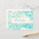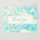 Une carte postale de remerciement chic et sophistiquée avec un motif en faux marbre élégant aux couleurs tourbillonnantes dans les tons bleu turquoise et crème.