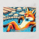 Carte Postale Cool Red Fox in a Hotspring Pool