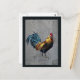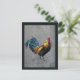 Une peinture colorée d'un coq bantam sur un fond de granit gris. Ce coq a des motifs de plumage exotiques et colorés. Un peigne rouge vif et une belle queue faite de plumes bleues.