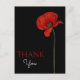 Une façon élégante de dire merci et d'exprimer votre sens personnalisé de gratitude. Personnalisez ce design avec un mot de remerciement personnel pour faire réaliser aux gens que leur gentillesse a été appréciée. Le design est un seul coquelicot rouge sur fond noir. Merci sur le devant et votre propre message au verso.