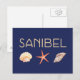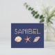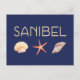 Sanibel Island, Florida seashells design avec l'aquarelle étoile de mer et coquillages et le nom Sanibel dans une police déco. L'arrière - plan bleu peut être changé en une autre couleur si vous le souhaitez.