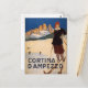 Affiche montrant une femme posée sur les pistes de ski à Cortina d'Ampezzo.