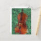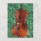 Cette belle grande peinture rayée d'un violoncelle contre un arrière - plan abstrait vert donne une belle image d'instrument de musique.