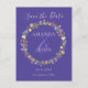Couronne de fleurs sauvages Fleurs Mariage Enregistrer la date Carte postale. Cette belle couronne de fleurs sauvages rose blush violet élégante annonce de mariage enregistrer la date est le moyen idéal pour informer vos amis et votre famille de votre grand jour à venir. L'annonce présente une superbe composition florale en fleurs bleues violettes. Pour toute personnalisation supplémentaire, n'hésitez pas à me contacter à mypaperlove2021@gmail.com
