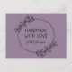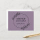 Simple verdure dans un format circulaire avec une écriture manuscrite et une police script superposée sur une carte postale violette terreuse.