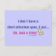 "Je n'ai pas une courte durée d'attention, je... Regarde un Kitty !" Drôle de dire d'être distrait et oublieux avec un graphique de chatte mignon. Texte / police en violet et rose et un arrière - plan bleu qui peut être changé. —