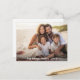 Utilisez une photo horizontale ou paysage et faites une carte postale unique et tendance. Cette conception minimale moderne comprend une photo de couverture complète avec superposition de texte pour ajouter des noms et du texte. Si vous avez besoin de déplacer quelque chose, cliquez sur le bouton personnaliser pour apporter des modifications.