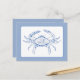 Cette carte postale présente un crabe côtier classique dans les tons bleu et blanc.