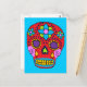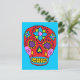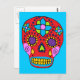 Carte postale de crâne à sucre d'art populaire mexicain. La couleur Arrière - plan peut être customisée.