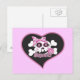 Ce mignon crâne et les arêtes de croix avec pois rose arc et lollipop est placé sur un coeur et est une carte postale sucrée que tout le monde aimera.