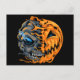 Effrayant jack-o-lanterne qui fond un crâne éffrayant aux yeux bleus.