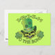 Le crâne vert portant un casquette Leprechaun aux accents shamrocks est juste à temps pour la Saint Patrick. Le message dit "IRLANDAIS À L'OS".