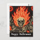Carte Postale Crâne sur feu Linocut Art Halloween heureux