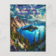 Une vue imprenable sur le lac Crater en Oregon, qui présente l'eau bleue vif reflétant le paysage spectaculaire des nuages. L'emblématique île Wizard se trouve majestueusement au centre du lac, ajoutant au paysage pittoresque.