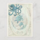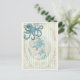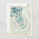 Pieuvre bleue marine avec tortues bleues illustrée à l'intérieur d'un cadre vintage avec un arrière - plan rayé rétro, grungy, turquoise/ivoire.