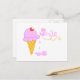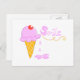 Carte postale de crème glacée Smile. Carte postale personnalisable a un mignon cône de crème glacée rose fondue avec une cerise sur le dessus et le mot sourire en lettres roses.